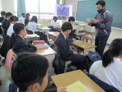 1年生です。昨日は百人一首大会で白熱した場面を見せてくれました。さすがの熱気に、体育館を冷やしている冬の神もタジタジのようでした。本日も元気に活動中!