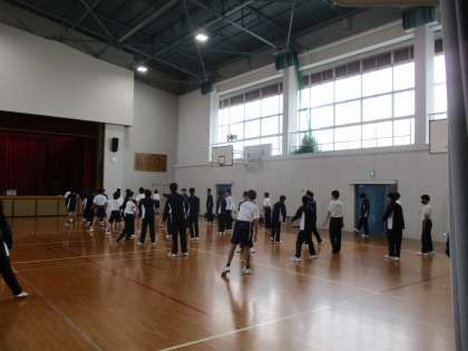 2年生体育は、体育館でのダンスです。近年は、2018年のブエノスアイレスオリンピックから正式種目となったブレイキンというダンスも流行しており、生徒は身近な競技として捉えているようで楽しそうに踊っていました。