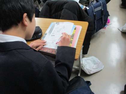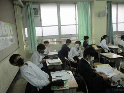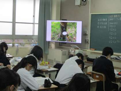 1年生の社会科地理です。ゴムの木の映像が映し出されていました。