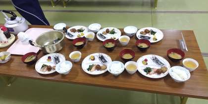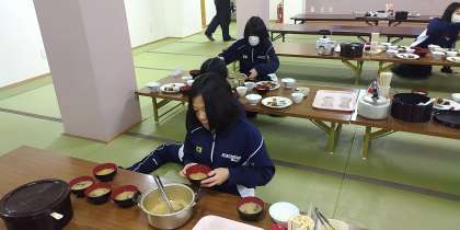 朝ご飯係生徒による盛り付け完了しました。キレイによそってくれています!