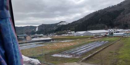 只今、兵庫県の養父市です。やはり雪が少なく、少しずつ大阪に向かっていることを実感します。