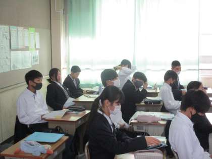 本日の様子です。早朝に朝日が見えていましたが、今は曇り空になって寒さが強くなっています。本日の生徒の様子です。