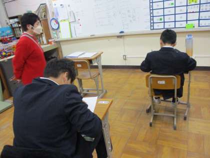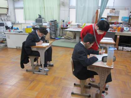 ふくなん学級です。それぞれ生徒ごとで自分の課題に挑戦中でした。数学と国語にチャレンジしています。