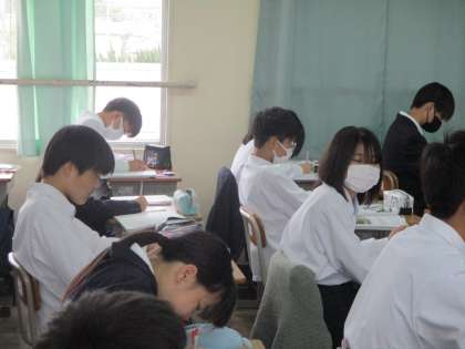 今日は昨日よりさらに冷えて、朝から気温が上がりません。教室の雰囲気も若干おとなしめに感じられました。課題にはおおむね集中できているようです。