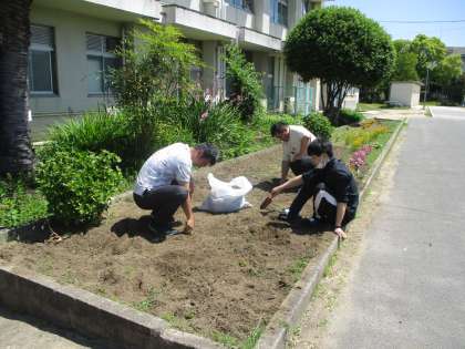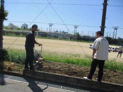 本日、学校花壇の整美を行いました。PTAのかたがたに、夏のお花をうえていただくべく、雑草抜きや耕運機での土壌改良に先生たちが取り組んでくれました。これから夏に向けて、花壇がきれいなお花で埋まるのが楽しみです。