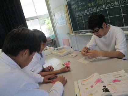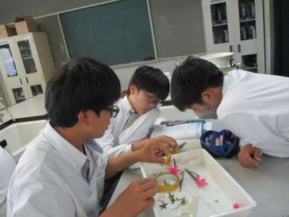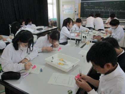1年生です。サツキの観察です。先生も一緒に行っています。