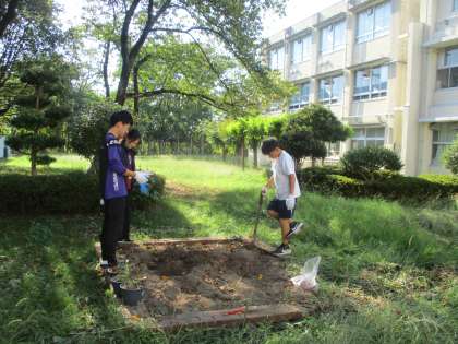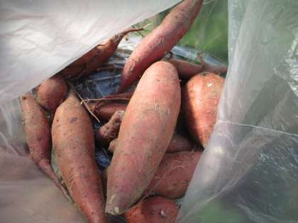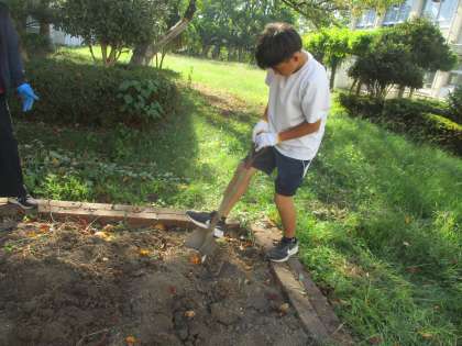 サツマイモを掘っています。今日はお天気で土が乾いて固く、大変な中の作業でした。