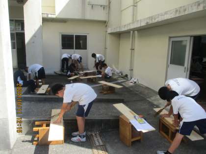 授業です。技術の授業で、本棚を作っていました。