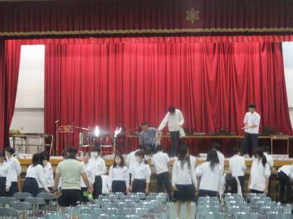 明日は文活発表会です。2年生が体育館準備で先生たちとともに頑張ってくれました!