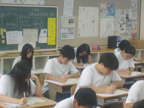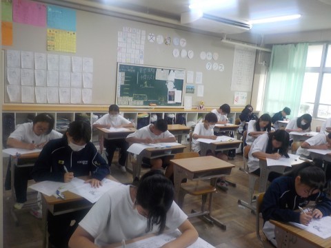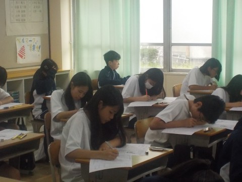 本日は、全学年がテストです。授業時間にはグループ学習で賑やかになる教室も、今日は静かに時間が流れます。真剣に取り組む気持ちが、結果に結びついて欲しいですね。みんな、全力を出し切って頑張れ!!