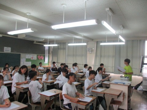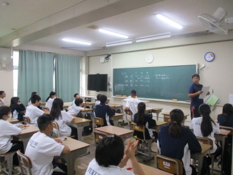 今年度、1学期は暑さ対策のためリモートで行いました。リモートでしたが、各教室に呼び掛けると元気な声がかえってきました。終業式では、生徒の代表として各学年の代表と生徒会長に登場してもらい、1学期の振返りと2学期の抱負を聴かせてもらいました。みなさん、堂々としていてよかったですよ!生活指導面では、生徒指導の天野先生から、フリップボード形式でわかりやすいお話をしていただきました。そして、最後は司会の教頭先生にしめてもらい、無事1学期終業式が終わりました。2学期始業式でも、元気な顔を見せて下さいね~。