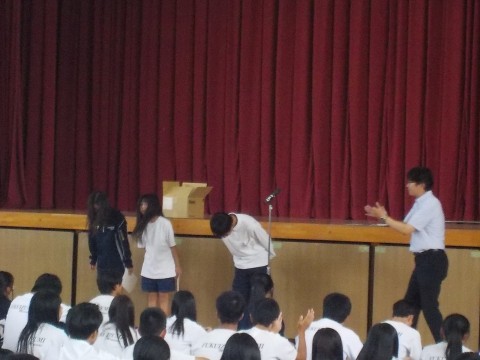 本日6時間目、後期生徒会役員を決めるための立会演説会が行われました。