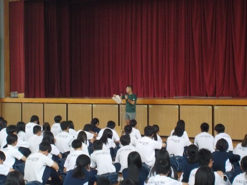 本日1時間目に、2学期始業式を実施しました。まず始めに、ドリーム水泳、柔道部、美術部の表彰がありました。続いて校長先生、生徒指導主事の先生より、2学期に向けてのお話がありました。また2学期も学習や行事に向けて、全力でがんばっていきましょう! -