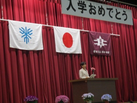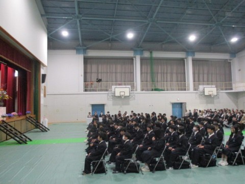 希望を胸にした新入生の皆さんと、たくさんの保護者の皆さまが福泉南中学校の校門をくぐりました。ご来賓の皆様、教職員の見守る中、新入生は少し緊張した様子ながら、真摯な態度で式に臨んでくれました。素晴らしい入学式でした。