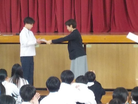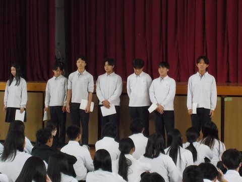 14日6時間目に、生徒会役員と専門委員会の認証式を行いました。生徒会役員は決意を新たに、生徒全員の前で認証状を受け取りました。生徒代表を中心に、生徒全員でよりよい福泉南中学校を作り上げていきましょう! -