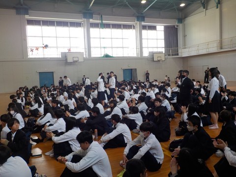 明日4月3日は、66期生の入学式になります。桜も程よく花開き、明日には満開の姿を見せてくれそうです。今日は2年生の皆さんが体育館の準備に登校してくれました。手際よく準備をしてくれている姿に、ついこの前までは1年生だったのが先輩の雰囲気がでているな~と感じさせられました。我々教職員一同も、明日新入生の皆さんに会えることを楽しみにしております。