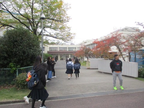 10月も最終の週に入りました。午後からは全校集会もあります。もうすぐ11月というのに,お日様が昇ると若干日差しに暑さを感じる強さで驚きます。週明けの生徒は,少し眠そうながら元気に登校してくれました。