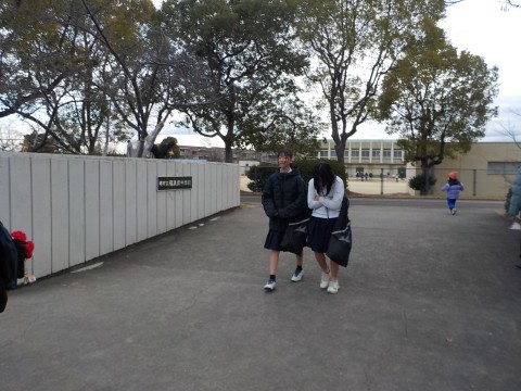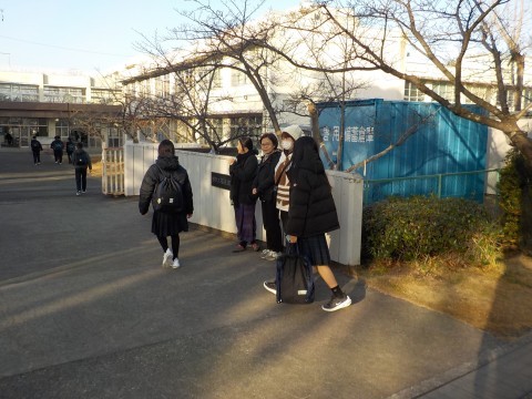 今日で2学期が終わります。2時間の授業や清掃・学活の後,終業式です。PTAの皆さんにも2学期最終日の挨拶運動で,緑道門に立っていただいております。