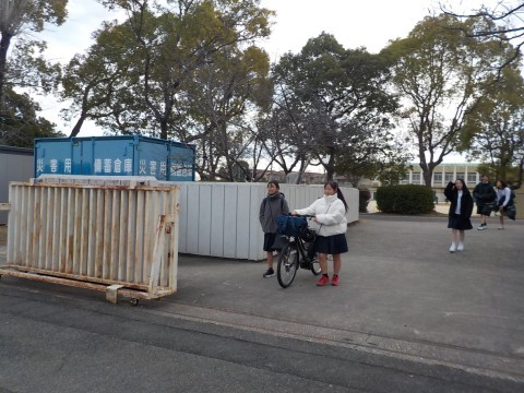 2年生では、来週に実施予定の保育体験の事前訪問にいくため、自転車を押して登校する生徒がいます。