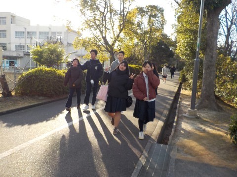 寒い朝が続きますが,毎日PTAの委員の皆さんが,早朝より生徒への挨拶運動に来てくださっています。お忙しい中,ありがとうございます。生徒もおはようの呼びかけに概ね元気に応えてくれ,気持ちよい朝のスタートとなっています。3年生は学年末テスト最終日です。気持ちを引き締めて登校していました。最後までファイト!