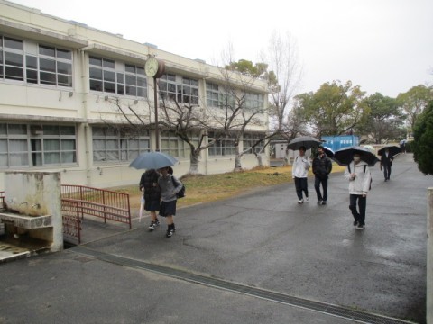 今週も金曜日となりました。明日から3連休で,週明けから1・2年生は学年末テストです。いよいよ終わりが見えてきました。3年生の1部の生徒が,今日も特別選抜試験に臨んでいます。誰もが学年末まとめをしっかりとできるよう,最後まで気を抜かないで走り抜けて欲しいと思います。