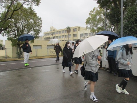 今朝の緑道門です。PTAの方々も,挨拶運動に来てくださっています。今日は,昭和11年(1936年)に起こった「2.26事件」から90年目にあたる2月26日になります。90年という数字に,歳月の流れを感じます。今日で1・2年生の学年末テストは終了で,部活動も再開されます。静かだった放課後が賑やかになります。また,生徒の声が響くいつもの福南が戻ってきますね。3年生は,学校に来るのも,あと残り10日。大阪府公立高校一般選抜も残っていますが,学校生活を噛みしめながら過ごしてほしいと思います。