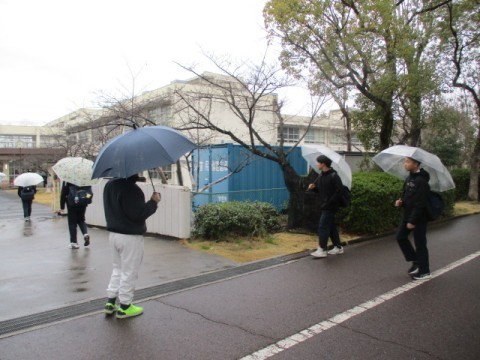 本日の登校風景です。今日もPTAの皆さんが挨拶運動に来てくださいました。2月下旬に向かって少しずつ最低気温が上がっては来ていますが,やはり朝は冷え込んで生徒の足運びが鈍るようです。今日は大阪府公立高校特別選抜入試の日です。先生達が主要駅で見送ってくれました。無事,実力の出せることを祈っています。