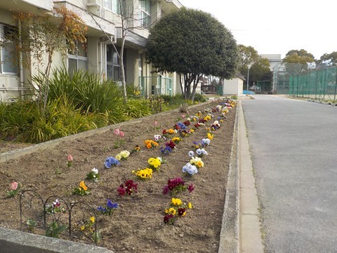 本日は,63期生の卒業証書授与式です。お天気も大丈夫なようで,PTAや地域のみなさんに整えていただいたお花も満開です。最後まで,厳かに挙行できればと思います。