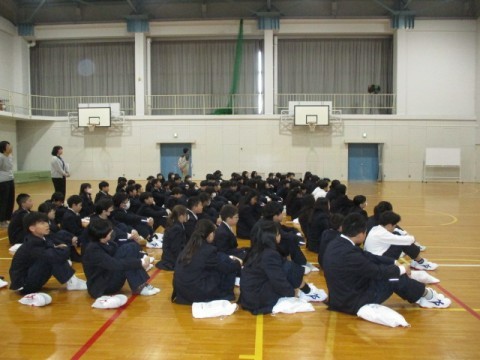 1年生は、各部活動のキャプテンの話にしっかり耳を傾けています。
