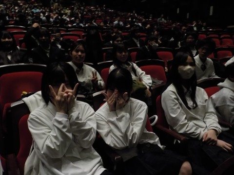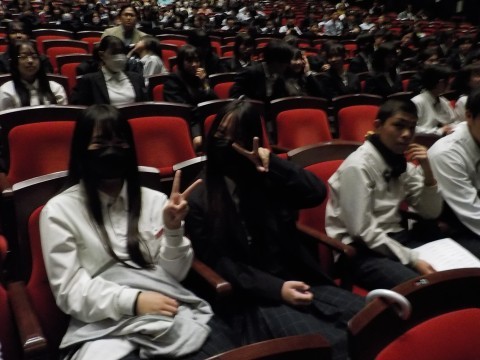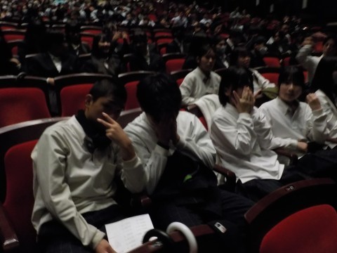 2年 +4 本日午後に,フェニーチ堺におきまして,連合音楽会が開催され,本校からは最優秀賞の2-1が出演します。少し早めのお昼ご飯をとって,12時に出発しました。あいにくの雨で,駅までの徒歩がハードウェイになりますが,それに負けず,重厚な会場で元気な歌声を大いに響かせてほしいと思います。
