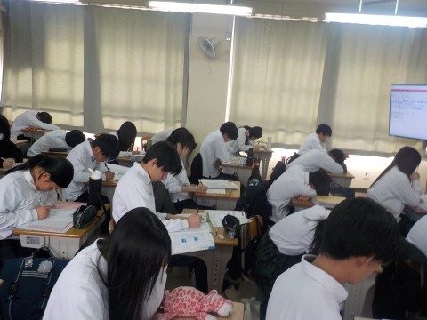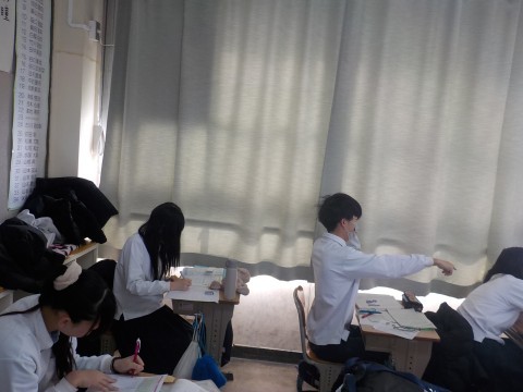 テスト前,最後の追い込みで勉強に励む(2/20)