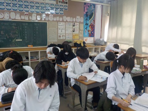 3年生は私立受験,1・2年生は学年末テストに向けて奮闘中(2/10)
