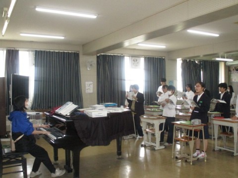 先生のピアノに合わせ、「巽をください」を熱唱。