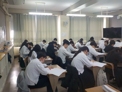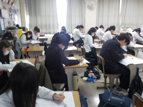 3年生,第3回学力診断テストです。集中しています。
