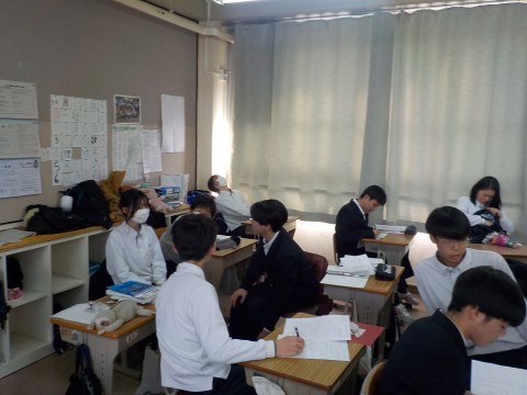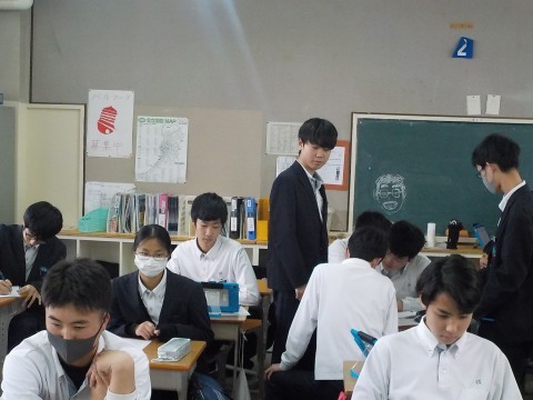 3年生です。いよいよ来週火曜日が私立高校入試です(一部高校では水曜日の祝日に面接が行われます)。仕上げを行うとともに,是非体調に気を付けて土日を過ごしてほしいです。「天は自ら助くる者を助く(God helps those who help themselves)」のことわざ通り,最後まで諦めず努力しましょう!