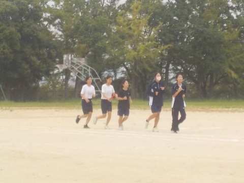 10/13の市民オリンピックに向けて、中学生と小学生で100m走とリレーの練習を行いました。福泉中央小学校のグラウンド集合で、本校代表生徒と福泉中央・桃山台の両小学校代表が集結し、バトンワークを中心に息を合わせるれんしゅうでした。本番でも活躍することを祈っております。