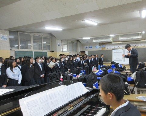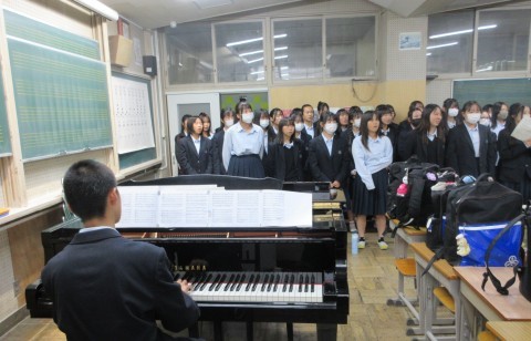音楽の授業では1組が合唱コンクールに向けて「COSMOS」の練習をしていました。