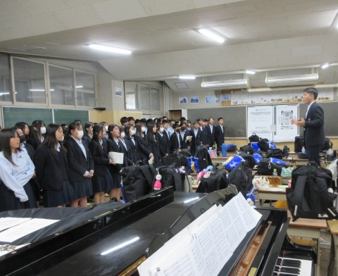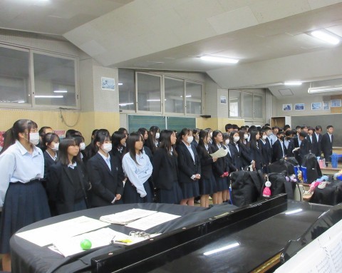6時間目、明日の堺市連合音楽会に向けて体育館でリハーサルを行いました。