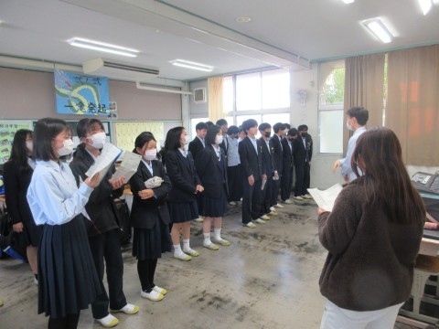 校長先生からは「体育大会、生徒会主催の地域清掃と積極的に取り組んでくれた。次の行事の文化活動発表会も団結して取り組んでほしい。各クラスでの取り組みが合唱に繋がるので頑張ってほしい。また、3年生は進路選択の時期になっている。志望校を決めてそれに向けて頑張ること。ここからが勝負!」という話がありました。