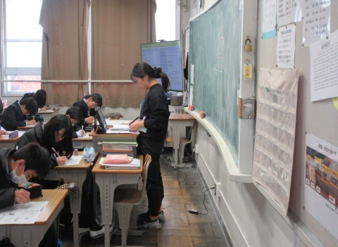 教室でパート練習をしているクラス・担任の先生が熱いメッセージを伝えているクラス等・・・