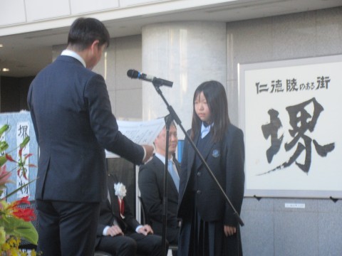 本校からは2年生が1名、「堺市議会議長長賞」に表彰され、表彰式に参加しました。