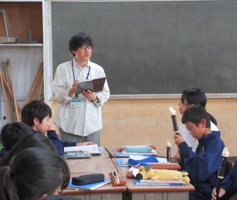 音楽の授業では、班ごとにアルトリコーダーで「聖者の行進」を発表していました。