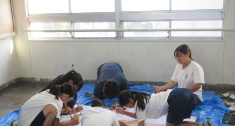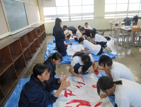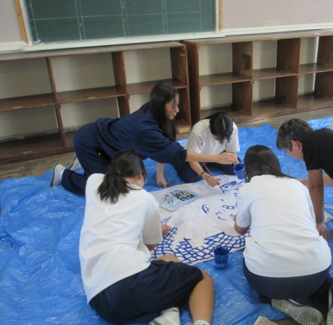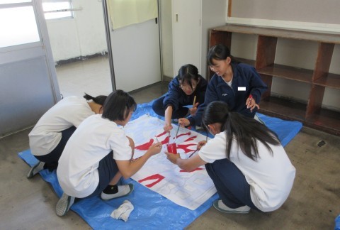 昨日から体育大会に向けて、各クラスで応援旗を作成しています。