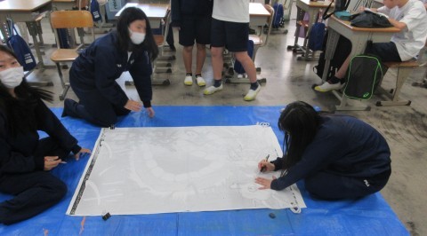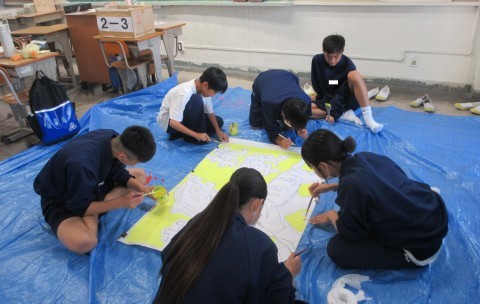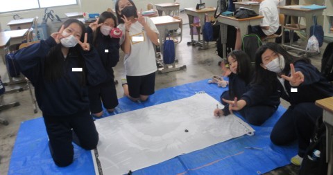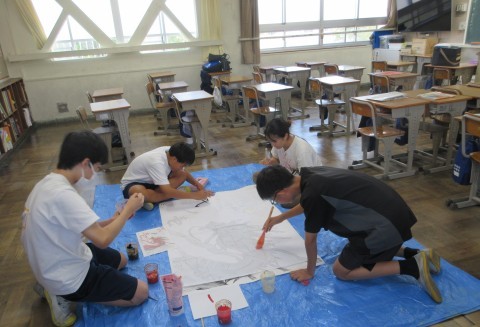 昨日から体育大会に向けて、各クラスで応援旗を作成しています。