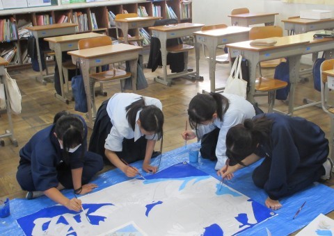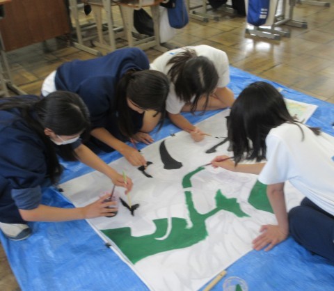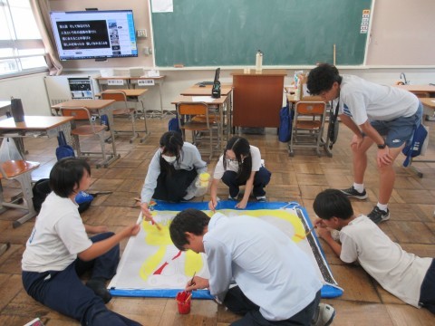 昨日から体育大会に向けて、クラスで応援旗を作成しています。