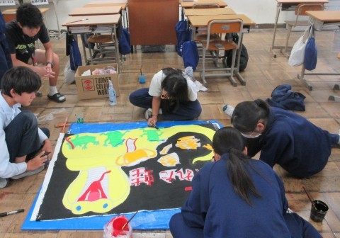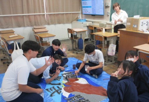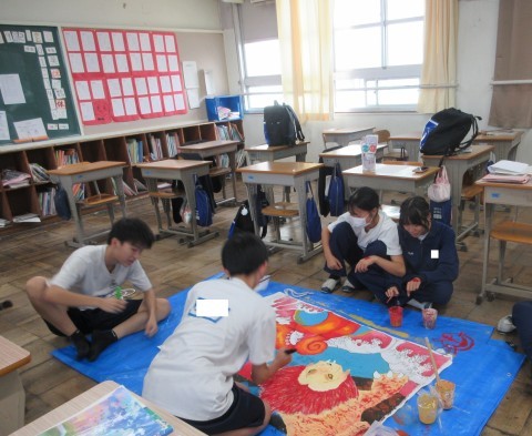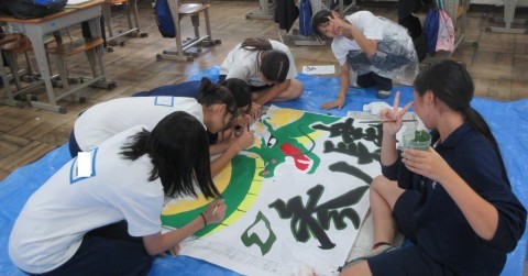 昨日の放課後も応援旗作成でした。4日目を迎えています。