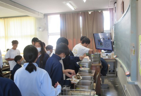 本日の献立は、ごはん・牛乳・いわしのかば焼き風・いも煮・豚汁です。