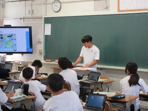英語の授業では、友達について発表していました。