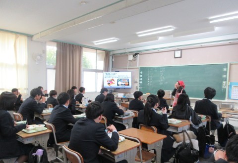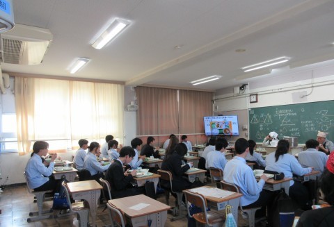 給食の時間に「食育動画」が流れ、どのクラスも真剣に見ていました。