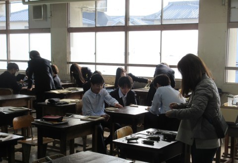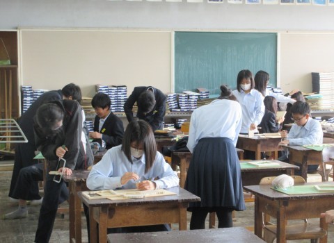 美術の授業では、パズルを作成していました。仲間と協力しながら作業していました。